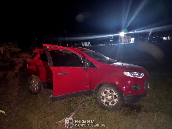 Policías de la Comisaria Distrito N° 16 La Toma investigan las causas del accidente, el cual ocurrió cuando, por razones que se tratan de establecer, una camioneta Eco Sport con tres ocupantes mayores de edad, volcó.