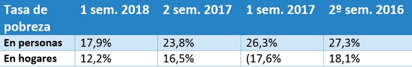 El estudio del Indec consignó que, en el primer semestre de 2018, la tasa de pobreza es del 17,9% de personas y 12,2% de hogares continuando la tendencia a la disminución de la pobreza que viene desde semestres pasados.
