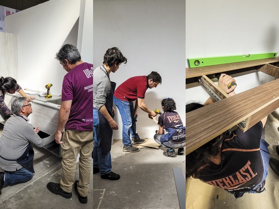 El showroom está ubicado en la nave de Ingeniería de la Universidad y el grupo que lleva adelante todo el trabajo atraviesa la etapa final de montaje. Los alumnos y profesores arman los muebles en una estructura que construyeron específicamente para este tipo de proyectos. Además, una vez que finalicen invitarán a Jonathan para que los evalúe y les brinde una devolución.