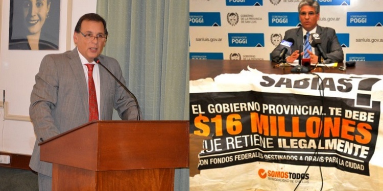 Otra de las grandes peleas entre ambos políticos fue en 2014, cuando el Gobierno le retuvo a la Municipalidad 16 millones de pesos pertenecientes al Fondo Federal Solidaria que después, cuando se sumaron los intereses, se convirtieron en 18. “Están distorsionando absolutamente la realidad y faltando a la verdad. Niego absolutamente que la provincia haya retenido ilegalmente fondos de la soja del municipio de la ciudad de San Luis”, dijo Poggi allá por 2014, asegurando que hubo un acuerdo entre el Gobierno y la Municipalidad capitalina para generar una “reserva” o fondo y así llevar a cabo la construcción en conjunto de una nueva planta de efluentes cloacales.