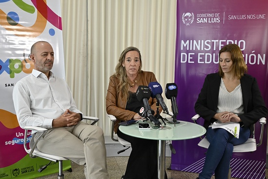 La funcionaria detalló los alcances de este encuentro durante una conferencia de prensa desarrollada en Terrazas del Portezuelo, que compartió con el jefe del Programa Gestión y Calidad Educativa, Diego Troentle, y la jefa del área Evaluación y Seguimiento de Proyectos Innovadores, Elina Pascucci.
