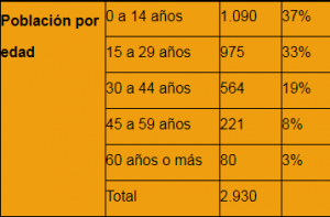 La gran mayoría de las personas que viven en el barrio son jóvenes, ya que el 70% (2.065) son de entre 0 y 29 años.