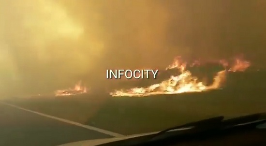 [dropcap style=”circle”]H[/dropcap]ace horas comenzó un gran incendio en la zona comprendida entre Manantiales y Toro Negro. Como puede verse en las imágenes que acompañan esta nota, el incendio ya ha alcanzado los costados de la ruta.