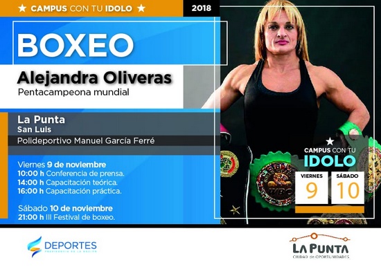[dropcap style=”square”]L[/dropcap]a ex campeona de boxeo Alejandra “Locomotora” Olivera llega hoy a La Punta para brindar una capacitación en el marco del programa Campus con tu Ídolo.