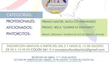 [dropcap style="circle"]H[/dropcap]asta el viernes 14 de agosto estarán abiertas las inscripciones para el 10° Certamen de Arte Urbano de San Luis organizado…