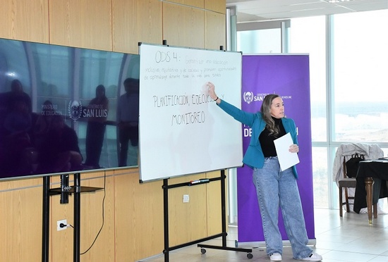 La ministra de Educación, Eugenia Cantaloube, resaltó el rol de los directivos y equipos docentes de cada escuela de la provincia por los logros alcanzados y el trabajo en conjunto, con herramientas y acciones que se enmarcan en los Objetivos de Desarrollo Sostenible (ODS) y que tienen como finalidad reforzar los aprendizajes y el bienestar de los alumnos.