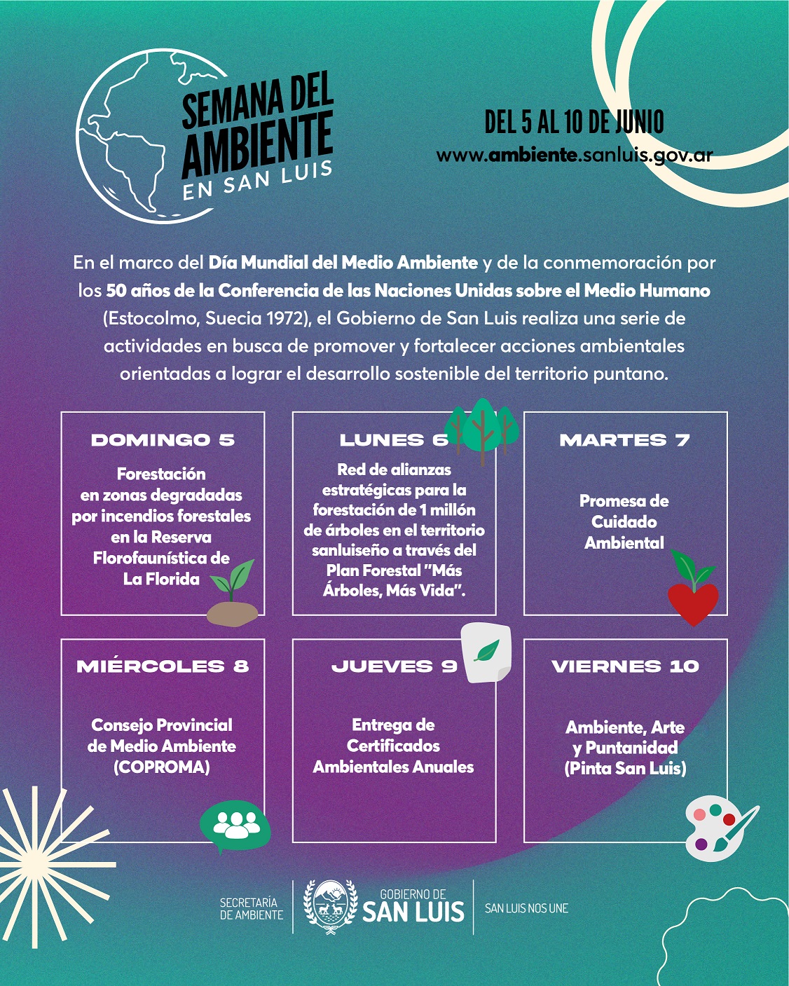 A continuación, la grilla de actividades de la Semana del Ambiente en San Luis: