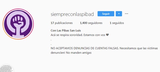 Algunas de estas cuentas fueron @laspibassl y @MachitosSL en Twtitter. Y decimos “fueron” porque ambas fueron denunciadas y dadas de baja en el transcurso del día de hoy. Eso sí, al momento de escribir estas líneas siguen activas dos cuentas de Instagram, “siempreconlaspibad” y “miracomonosponemossl”, sumando seguidores a todo momento. La primera de estas cuentas es pública y puede ser vista por cualquier persona, mientras que la segunda es privada y solo siguiéndola se puede ver su contenido.