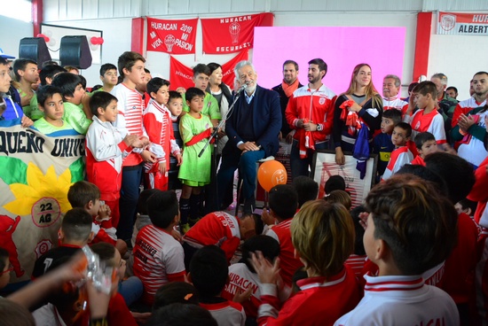 “¡Qué día más feliz! Es bonito hacer este tipo de obras porque hacemos felices a estos chicos, a esta barriada, a niños, niñas, adolescentes que adoran a este club tan tradicional, tan querido por todos. En Huracán han estado familias tradicionales de nuestra ciudad y son socios de toda su vida de este querido club. ¡Qué lindo es este SUM! Acá formaremos a más deportistas, pero también es para la cultura, la danza, la música. Cuando estemos tristes nos venimos acá para ponernos contentos, y si estamos contentos vengamos a transmitir nuestra alegría. Y en estas épocas de crisis tenemos que poner más merenderos para contener a más chicos y darles lo que les haga falta. Debemos luchar para que ningún chico se vaya a comer con la panza vacía”, dijo el Gobernador en parte de su discurso.