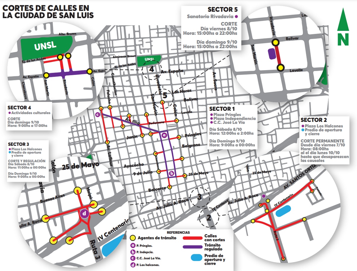 [dropcap style=”circle”]E[/dropcap]ste jueves por la tarde, desde el Gobierno comunicaron los cortes de calle que tendrán efecto como parte del 35° Encuentro Plurinacional de Mujeres, Lesbianas, Trans, Travestis, Bisexuales, Intersexuales y No Binaries, el cual tendrá lugar en la ciudad de San Luis desde este viernes 7 de octubre al lunes 10.