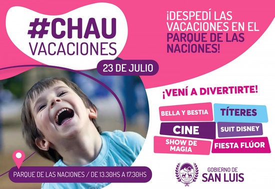 [dropcap style=”circle”]C[/dropcap]on la intención de realizar un cierre a lo grande del receso invernal, el Gobierno provincial desarrollará una jornada con múltiples actividades. Se realizará en el Parque de las Naciones, de 13:30 a 17:30, y combinará diversión, recreación, gastronomía, obras teatrales y música. El objetivo es pasarla bien y recargarse de energía antes de regresar a clases.