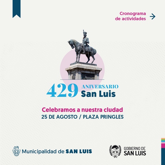 La celebración de este viernes es el cierre de la agenda del Mes de la Puntanidad, una serie de actividades culturales y recreativas que reunió charlas abiertas sobre historia de San Luis, intervenciones artísticas al aire libre y la apertura del salón Mujeres Puntanas, en el Palacio Municipal.