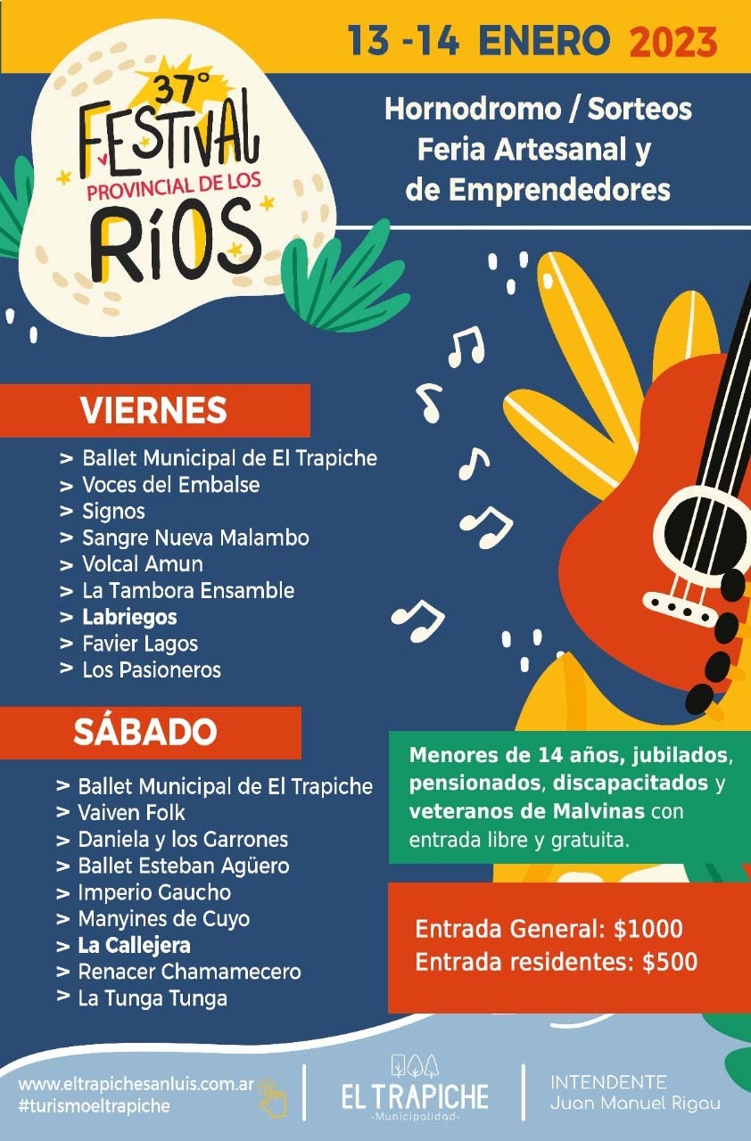 Festival de Los Ríos de El Trapiche: más de 15 artistas y $200.000 en premios