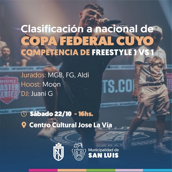 Las actividades comenzarán con las inscripciones, a las 16 horas, y se espera la asistencia de competidores de distintas localidades de San Juan y Mendoza. A las 17 comenzará una ronda de filtros que seleccionará a los 24 participantes que competirán en los octavos de final. Así irán sucediendo las diversas etapas (cuartos, semis y final), cuyos ganadores serán definidos por un jurado de tres freestylers muy conocidos en el ambiente, MGB, FG y Aldi.