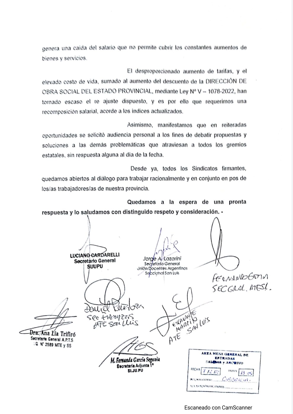 A modo de repaso, Gatica señaló que la CTA de San Luis está integrada por gremios y sindicatos como ATE (Asociación de Trabajadores del Estado), ADU (Asociación de Docentes Universitarios), APTS (Asociación de Profesionales y Técnicos de la Salud), y el Sijupu (Sindicato de Judiciales Puntanos), el cual se ha incorporado a partir de este periodo. A ellos se suman organizaciones sociales, como la CCC (Corriente Clasista y Combativa) y FeNaT (Federación Nacional Territorial).