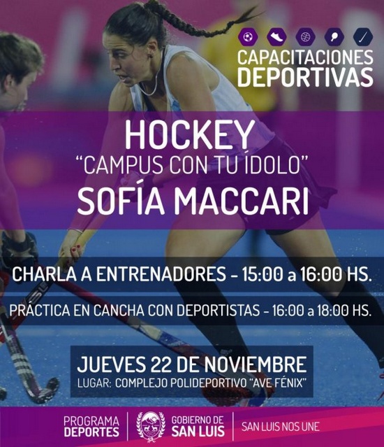 [dropcap style=”square”]L[/dropcap]a ex leona Sofía Maccari llegará a San Luis hoy para brindar una capacitación sobre hockey. El evento es abierto a todo público y sin inscripción previa.
