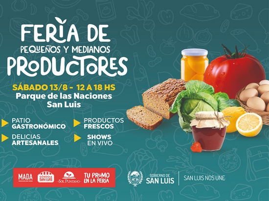 También se suman a la propuesta las artesanías del Mercado de Arte, Diseño y Artesanías (MADA) con manualidades y producciones artesanales para el hogar y regalar. No faltará la producción fresca de Sol Puntano, que ofrecerá distintas variedades de verduras, productos envasados y diferentes cortes de carne, de calidad y a precios accesibles.