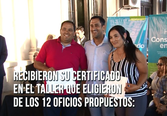 Las capacitaciones dictadas fueron en los siguientes oficios: plomero, electricista, carpintero, operador e informador turístico, mantenimiento de parques y jardines, albañilería, buenas prácticas de manufactura para manipuladores de alimentos, operario textil, construcción en seco, instalación de aire acondicionado, peluquería, herrería, cocina, panadería y pastelería. Actualmente continúan dictándose los cursos del cuarto ciclo de este programa, el cual se prevé que finalizará en diciembre con una nueva entrega de diplomas.