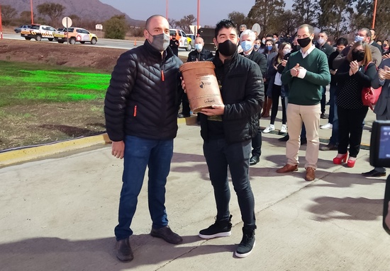 El acto comenzó con la entrada de la Bandera de Ceremonia y con Enzo “Huesito” Flores, quien recientemente representó a San Luis en “La Voz Argentina”, entonando las estrofas del Himno Nacional. Luego, un sacerdote católico bendijo la obra, se le entregó un presente al “Chino” Maradona, se proyectó una memoria descriptiva de la obra y el intendente Olivero hizo uso de la palabra.