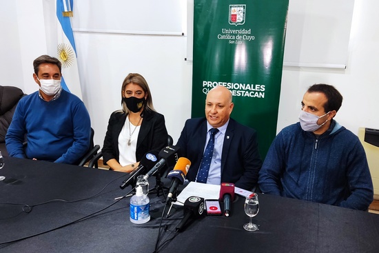 [dropcap style=”circle”]C[/dropcap]on motivo de la presentación del Programa de Control de la Equinococosis Quística en Caprinos y Ovinos de la región norte de la Provincia de San Luis, se realizó en la Universidad Católica de Cuyo una charla y posterior conferencia de prensa para dar detalles del proyecto. La misma contó con la presencia del decano de la Facultad de Ciencias Veterinarias, el médico veterinario José La Malfa; el intendente de La Carolina, Alberto Ferraro, donde se pondrá en marcha la primera etapa del proyecto; la presidenta de la Sociedad Rural San Luis, Yenny Yurchag, y el jefe de subprograma de Producción Pecuaria del Gobierno, Juan Manuel Celi Pretti.