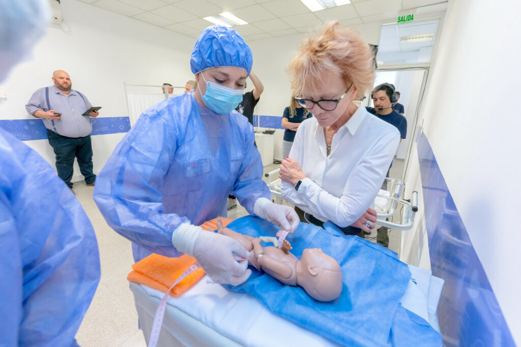 Karina Matera explicó que el edificio cuenta con una sala de briefing, un área técnica, un área de gestión, un taller de habilidades, un área de adultos, un área de maternidad, una sala de pediatría y neonatología. En estos espacios están ubicados los seis simuladores humanos, maniquíes de alta tecnología, donde los estudiantes podrán plantear escenarios típicos de la rutina médica: partos, colocación de acceso venoso, administración de planos de hidratación y extracción de sangre, entre otros.