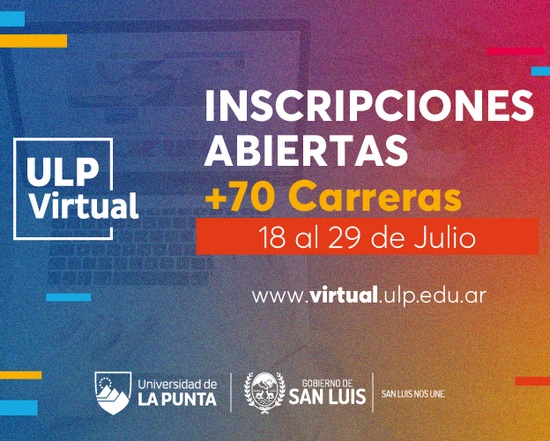 [dropcap style=”circle”]L[/dropcap]a ULP Virtual abre un nuevo ciclo de inscripciones. Será desde este lunes 18 de julio y se extenderá hasta el 29 de julio. La oferta académica vigente cuenta con más de 70 propuestas entre diplomaturas, tecnicaturas, licenciaturas, posgrados y cursos.