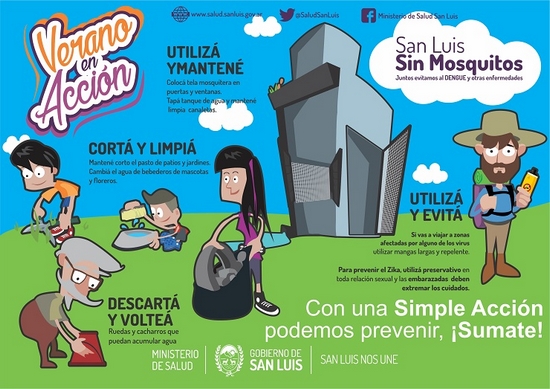 [dropcap style=”square”]E[/dropcap]l Ministerio de Salud puso en marcha la campaña “San Luis sin mosquitos”, el plan de prevención e información a la población para evitar la transmisión de enfermedades como dengue, zika y chikungunya, entre otras.