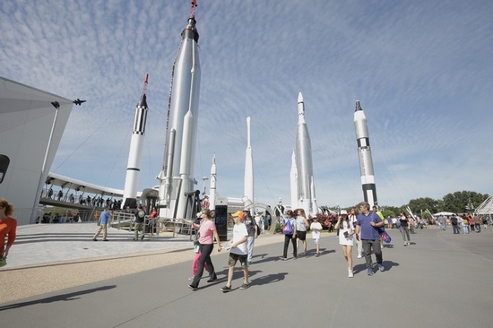 “Siguen caminando hasta el ingreso, coronado por un gran cartel que indica ‘Explore’: detrás una muestra cronológica desde albores de la exploración espacial a las misiones actuales y en curso, cada una de ellas con su respectivo cohete, capsula o misil. Tras recorrer esta zona, subirse a los módulos y tomarse fotografías, el contingente se dirige hacia la zona donde van a almorzar.