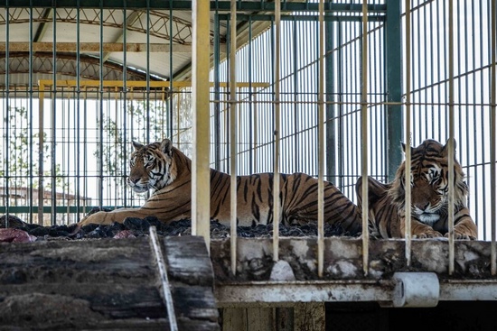 Luego, los dos tigres se convirtieron en una familia de cuatro, y desde hace 15 años viven caminando de un lado a otro en un vagón convertido en jaula de 75 metros cuadrados.