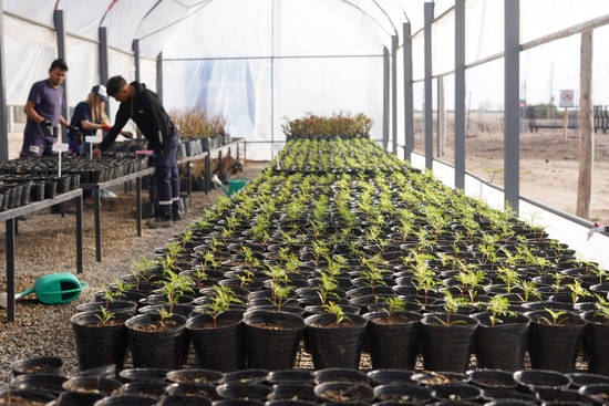 Uno de los sectores que se divisa desde la autopista Serranías Puntanas es el Invernadero. En el mismo se producen árboles, plantines florales y hortalizas. Enfrente, encontramos el sombráculo donde se acopian y protegen los árboles grandes que serán utilizados en la forestación urbana de veredas y plazas de la ciudad.