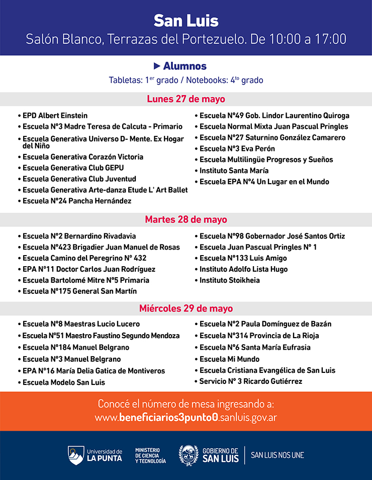 Este martes, el gobernador, Alberto Rodríguez Saá, y la ministra de Ciencia y Tecnología, Alicia Bañuelos, acompañaron a los alumnos en la entrega de dispositivos. “El gobernador vino a saludar a los niños que estaban recibiendo su tableta, como a todo el personal que trabaja para que estas entregas sean rápidas y eficientes, para que la gente no tenga que esperar”, sostuvo Bañuelos.