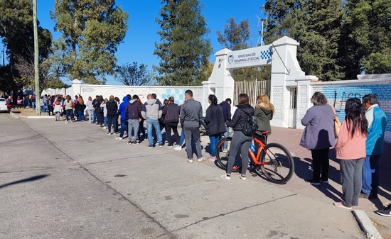 [dropcap style=”circle”]E[/dropcap]ste lunes comenzó el reempradronamiento del Plan de Inclusión Social y la concurrencia ha sido verdaderamente masiva. La cola de gente comenzaba en el portón del boulevard Quines y daba toda la vuelta por Catamarca, hasta llegar al frente de la Jefatura Central de Policía. Esos son aproximadamente 800 metros, de acuerdo a Google Maps. Una vez dentro de la ex Colonia Hogar, el trámite es relativamente rápido, pero para llegar hasta ese punto hay que hacer unas 3 horas de cola, aproximadamente.