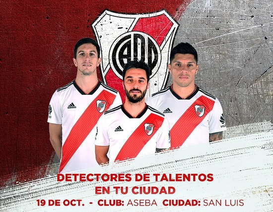 [dropcap style=”square”]E[/dropcap]ste viernes 19 de octubre, los detectores del Club Atlético River Plate visitarán nuevamente San Luis en busca de nuevos talentos. Las pruebas se realizarán en el club Aseba en diferentes horarios según las edades de los chicos.