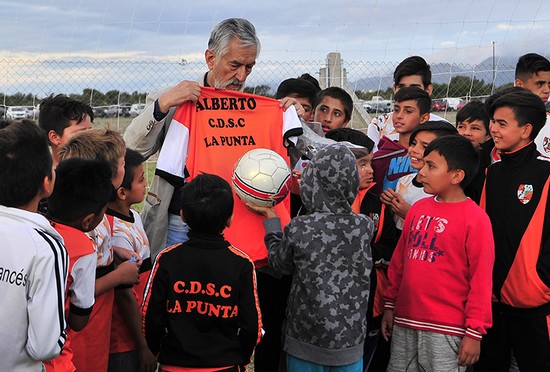 Como festejo, los alumnos le regalaron al mandatario un escudo, un cuadro con fotos, una bandera, una camiseta y un banderín del club. Después, en la cancha de 11, el gobernador pateó un penal inaugural.