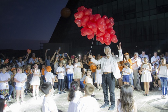 Las luces volvieron a encenderse y una docena de niños y niñas, vestidos con remeras blancas ingresaron al medio del predio tomados de la mano y armaron un corazón. La pequeña Luz Viteri hizo su ingreso con un puñado de globos rojos y, de la mano del Gobernador, ingresó al centro de la formación que habían armado los otros chicos y soltó al aire globos con forma de corazón, a modo de “señal de esperanza por lo que vendrá”. Al mismo tiempo, desde los parlantes, se escuchaba el latir de un corazón.