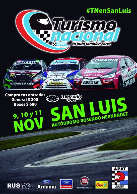[dropcap style=”square”]D[/dropcap]esde el viernes 9 al domingo 11 de noviembre se desarrollará la 11ª fecha del Campeonato Argentino 2018 de Turismo Nacional en el autódromo Rosendo Hernández. Turismo Nacional ya puso a disposición la venta de entradas por Mercado Libre.