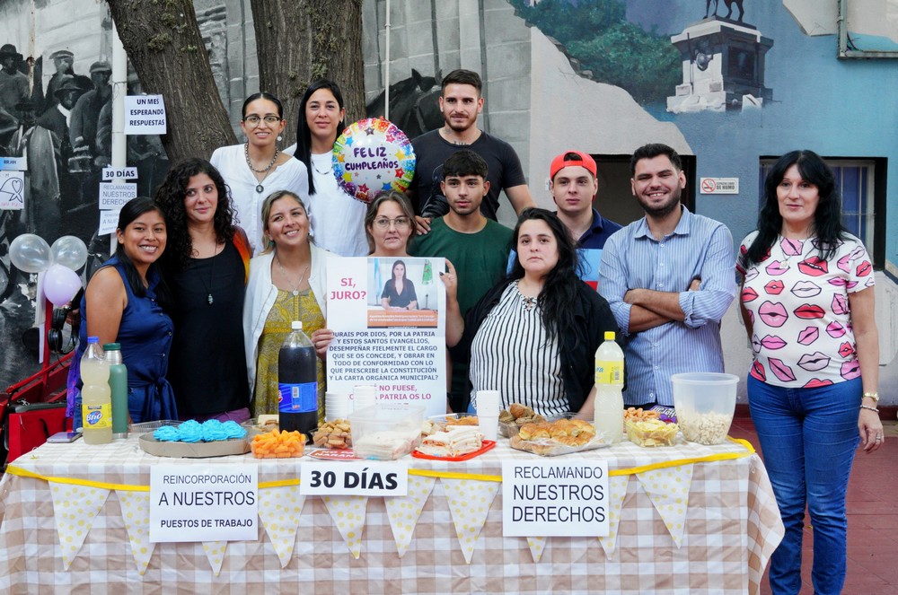 Con gaseosas, facturas, globos y snacks, los empleados que esperan que se les asignen tareas celebraron esta mañana su cumplemes en el patio del Concejo Deliberante. “El 27 de febrero nos presentamos a trabajar y seguimos a la espera acá en el patio, esperando que nos asigne tareas, que nos de el ingreso y que, por supuesto, hoy pague los haberes que nos corresponden porque hemos venido todos los días desde las 8 de la mañana hasta las 2 de la tarde, esperando que nos escuche”, manifestó Bárbara Témoli, una de las empleadas cuya restitución como planta permanente del Concejo fue ordenada por la Justicia.