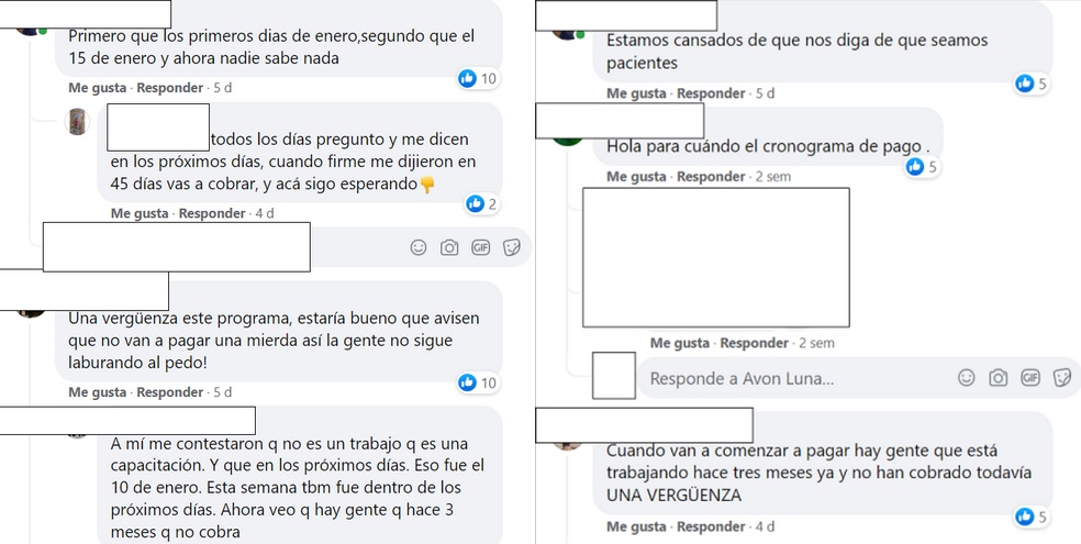 En Facebook, esta publicación del 26 de diciembre cuenta hoy con decenas de mensajes de jóvenes que están reclamando porque hace más de 2 meses que están trabajando y todavía no cobran los $9.000 o $12.000, según la modalidad, que el Gobierno había prometido. A continuación, reproducimos algunos de los comentarios que pueden verse en esta publicación.