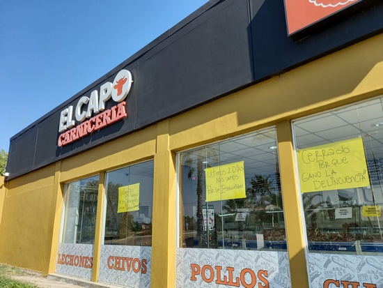 En sus redes sociales, El Capo publicó además fotografías de carteles con leyendas como “últimos dos días”, “cerrado porque ganó la delincuencia” y “seis familias sin trabajo”.